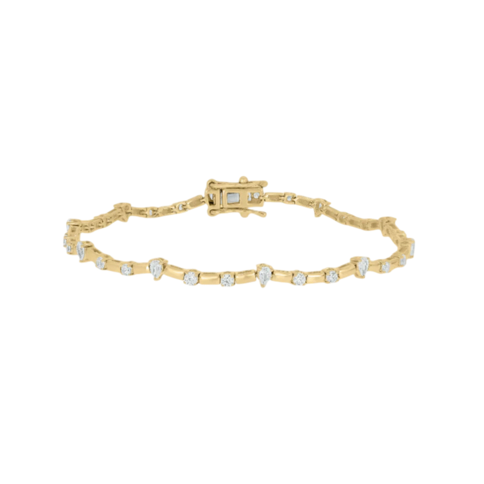 The Mari Bracelet is a stunning expression of elegance and timeless sophistication. Crafted in 14K gold, it showcases natural diamonds totaling 1.18 carats, set to maximize brilliance and sparkle. Designed for both luxury and wearability, the secure box and safety clasp ensure it stays gracefully in place, making it a refined accessory for special occasions or everyday elegance.