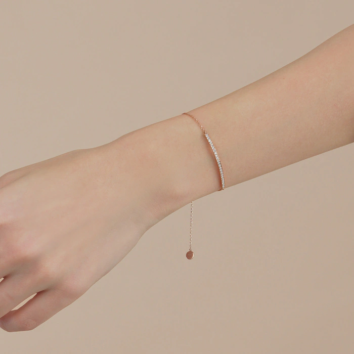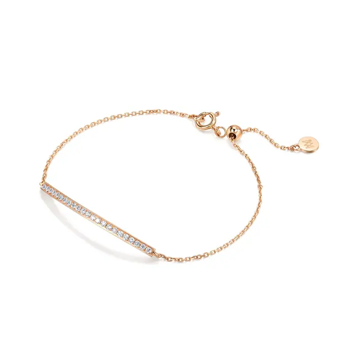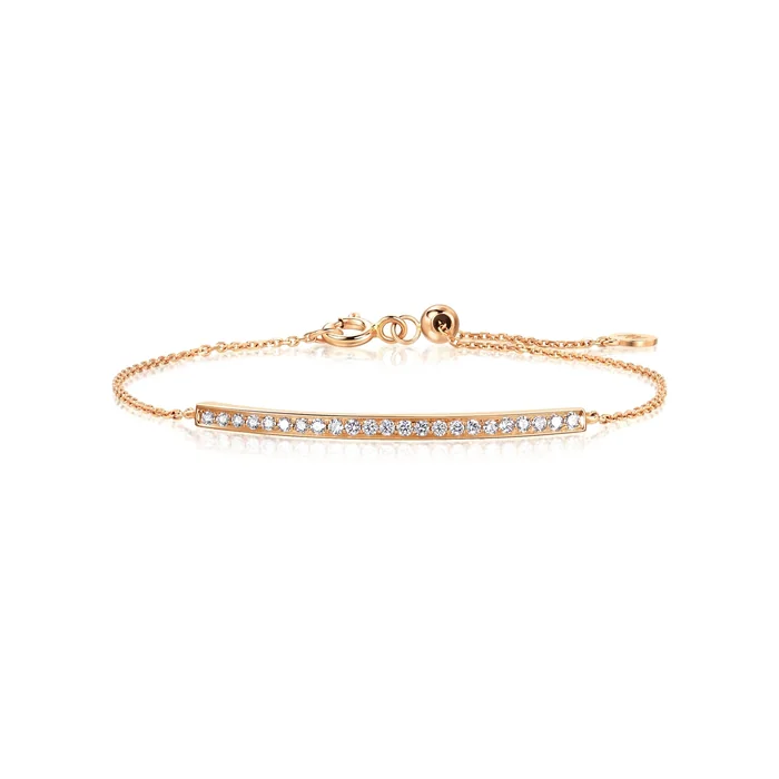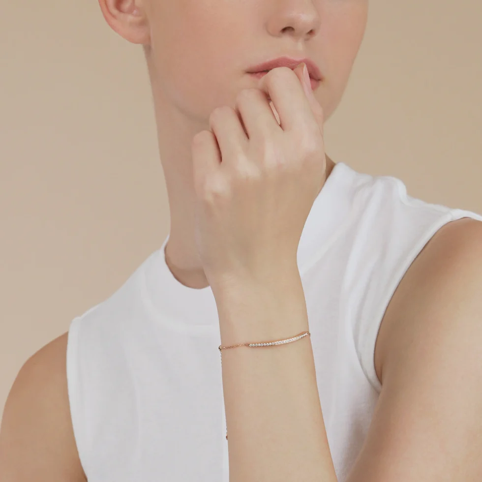 The Rosé Éclat Diamond Bracelet is a delicate and refined piece, crafted in 18K rose gold and adorned with 23 glistening round brilliant diamonds totaling 0.28 carats. Its understated elegance and timeless design make it the perfect accessory for any occasion, complementing both casual and formal attire. Comfortable on the wrist with an 18cm length, this bracelet captures light beautifully, symbolizing enduring beauty and sophistication.